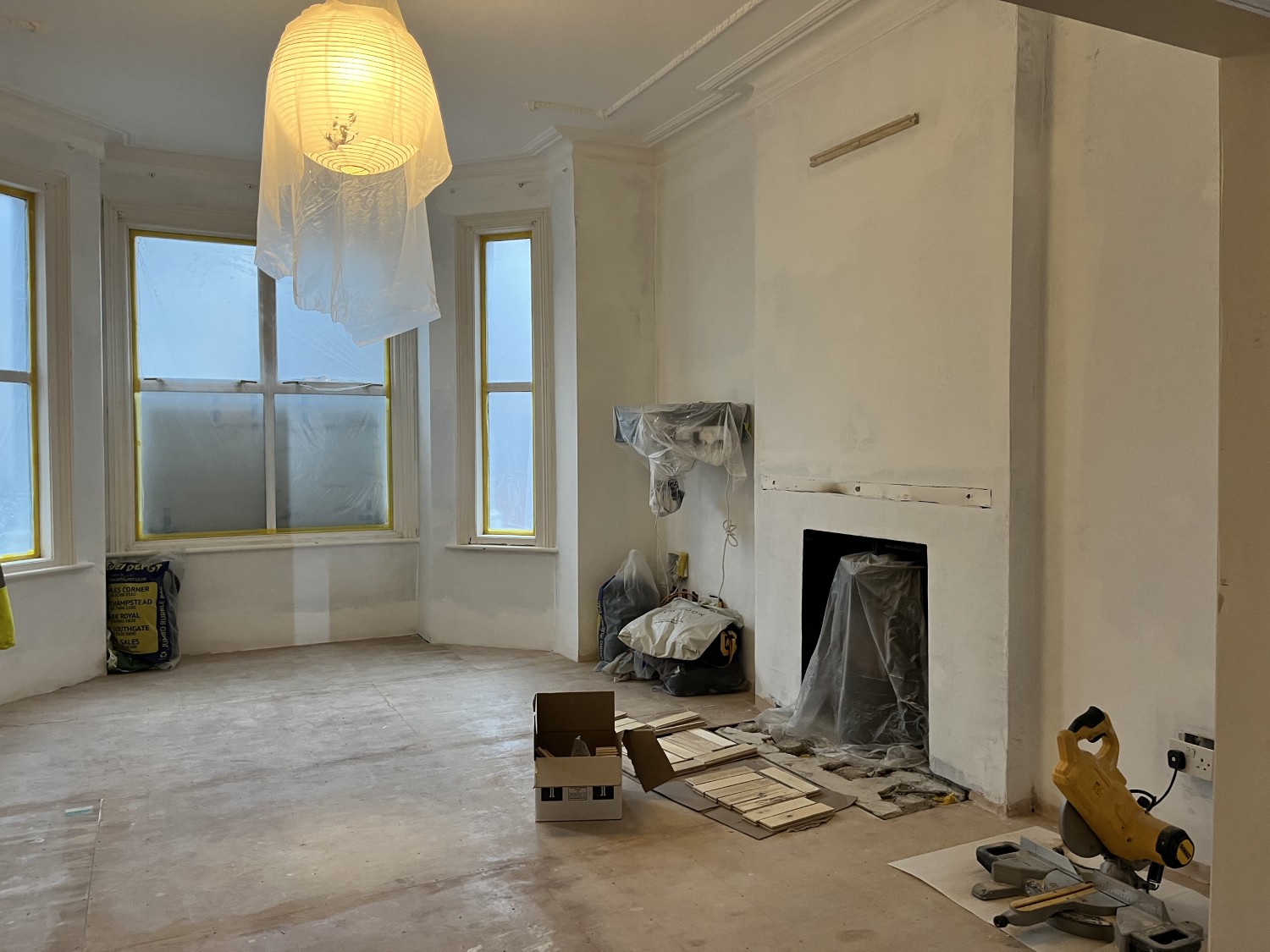 On the first floor, we removed internal partitions, relocated doors, and prepared the layout for a new bathroom and updated joinery. Existing sanitary ware and fireplaces were removed, floors were levelled, and waterproofing was completed ahead of installation. All structural changes were carried out in line with the approved design.