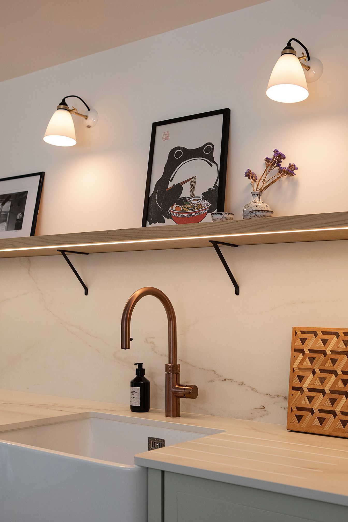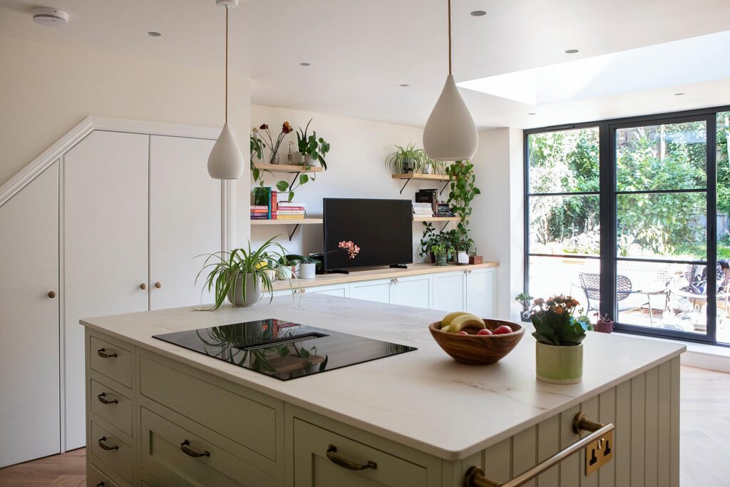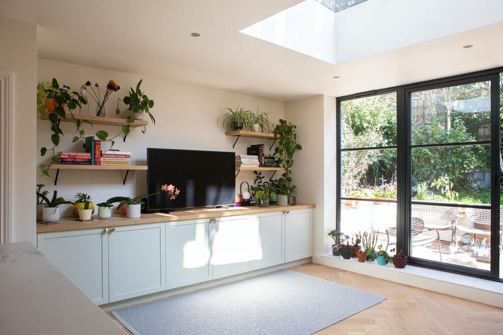 The rear extension and roof lights installation maximised natural light and strengthened the connection between indoor and outdoor spaces. The finishing touches — painting and decoration — completed the cohesive look, reflecting the calm and contemporary feel envisioned by the design studio.